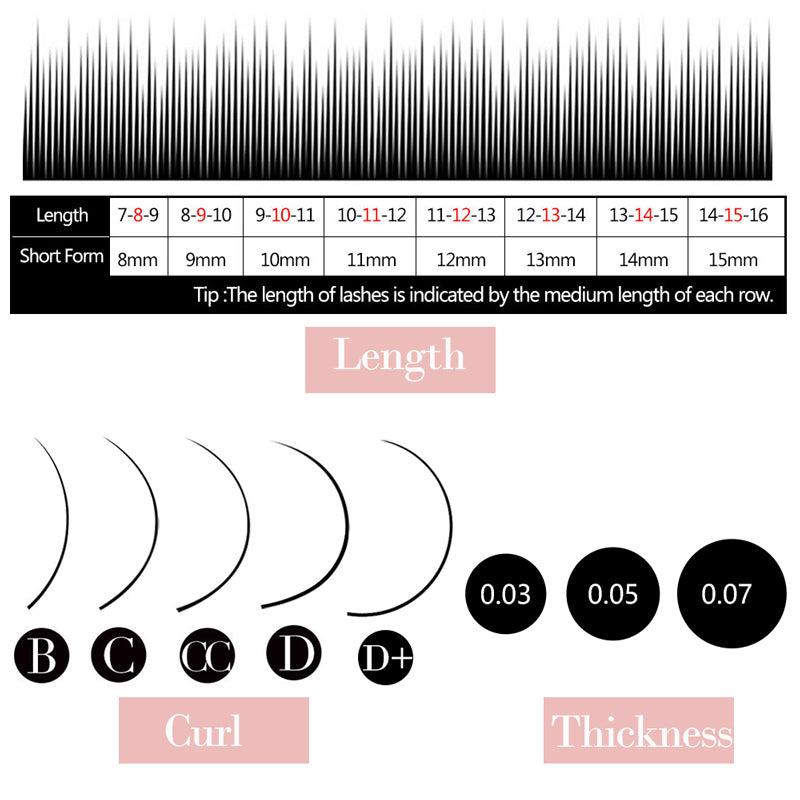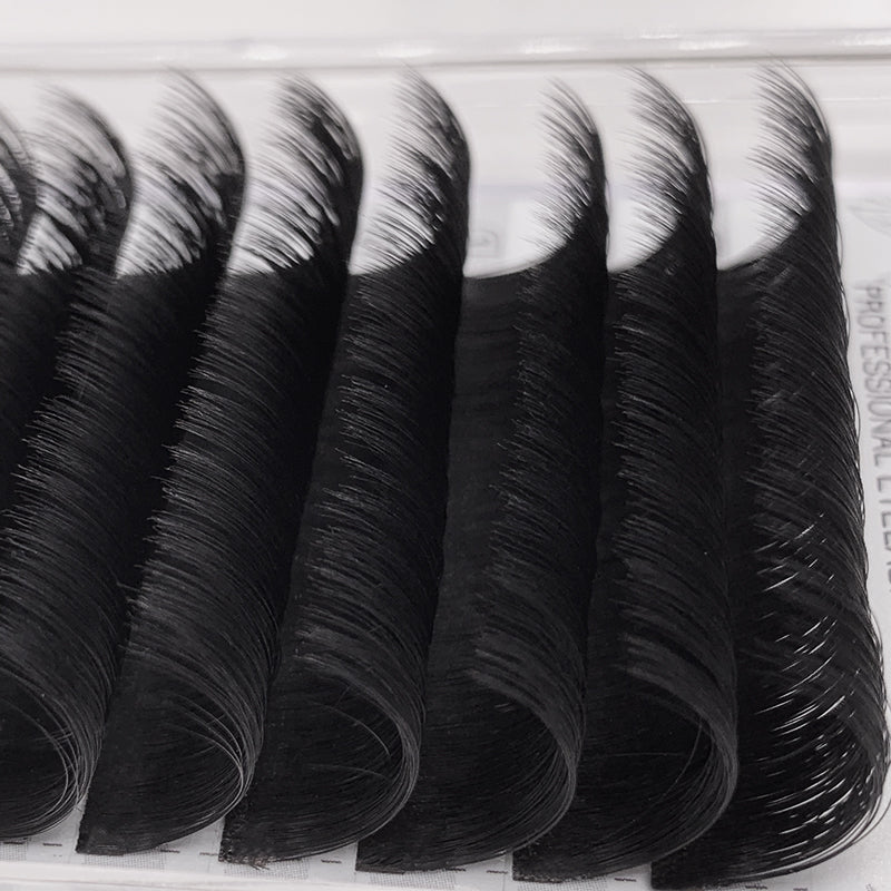 The easy fan volume eyelash extensions can increase density and let your grafting time be saved by half, especially for the salon tray. Flowering lashes extensions are fluffier, lighter, stronger, and softer to touch. From 0.03 to 0.07, the hardness increases steadily.