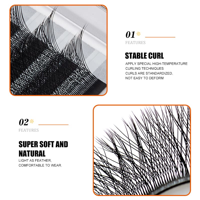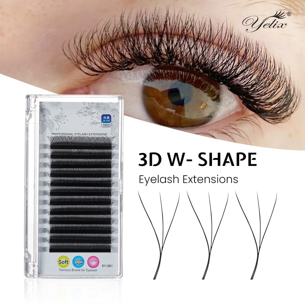 Yelix 0.05 3D-W Shaped B/C/CC/D Curl Lashes Single/Mix 8-15mm Soft Lash Trays Eyelash Extension