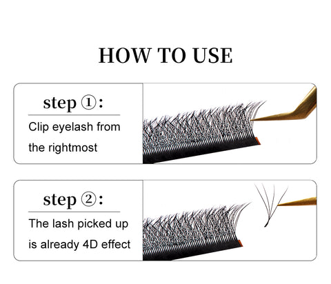 1. 4D W Shaped Lashes are glued together at the base to create the volume eyelash. They are very easy to use and great for beginners.