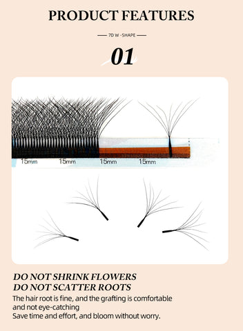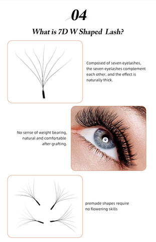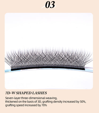 Yelix 0.07 7D-W Auto Fan Eyelash Extensions are designed with a unique 7D shaped curl to replicate a natural lash look. Featuring an innovative W-shape, they make it easy to get a stunning and voluminous lash look. Made with premium quality materials, they are lightweight and designed for long-lasting wear and comfort.