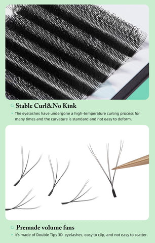 Yelix 0.07 Double Layer 3D-W shaped Auto Fan Eyelash Extensions are designed with triple-leaf clovers, creating fuller and fuller-looking volume. Utilizing a unique design, the Extensions help cut your application time by up to 50%, all while providing superior length and curl retention.